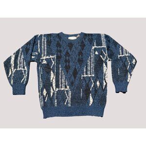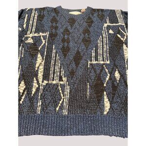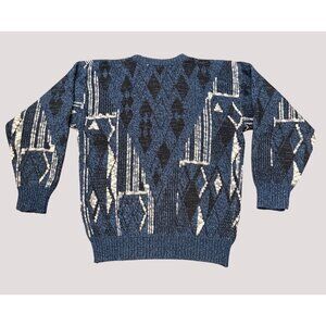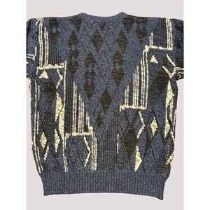 Vintage 80/90s Geometric Sweater Abstract Diamond Pattern Blue Black Gerald M