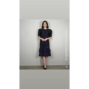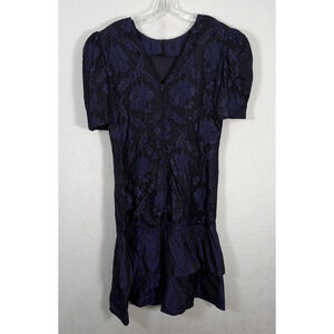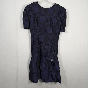 Vintage 80/90's Jessica Howard Dress 16 Blk/Prpl Prom Puff Sleeve Tiered Ruffle