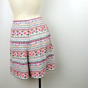 Vintage 80/90s Womens Blast Shorts Medium Knit Pastel Tribal Print Elastic Waist