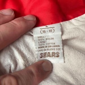 Vintage 80 Sears Red Nylon Coaches Jacket Lined Snap Front USA Womens L 16-18