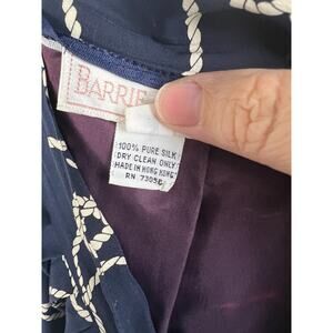 Vintage 80s 100% Silk Navy Pleated Midi Skirt Rope Pattern Preppy Size 6 Small Barrie Pace Ltd