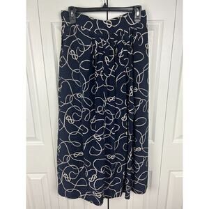 vintage silk skirt, silk midi skirt, navy skirt, pleated skirt, rope print, scarf print, preppy, chic, career wear, 80s,beachy, academia, work, career, office, occupational, coastal chic,teacher, sophisticated, modest,