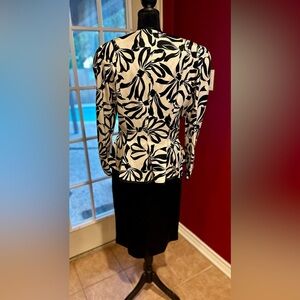 • Color: White and Black floral jacket with solid black skirt