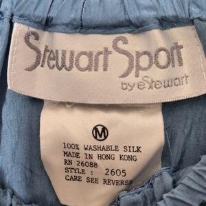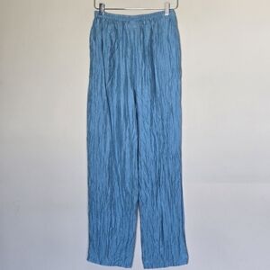 Vintage 80s 100% Silk Washable Blue Crinkle Wide-Leg Pull-On Pants Pockets M