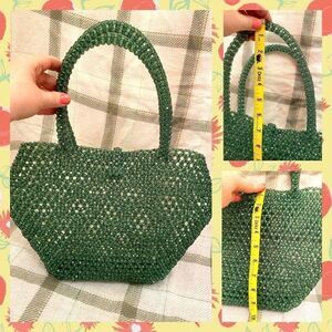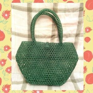 Step back into the 1980’s with this structural jewel of a handbag — a rare vintage beaded purse made entirely of faceted forest-green beads that shimmer like emerald glass. The rich, jewel-tone green is right in line with today’s trending runway shades, making it a piece that feels both retro and fashion-forward.