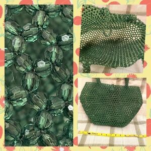 Vintage 80’s 100% forest green faceted beaded purse structural jewel tone