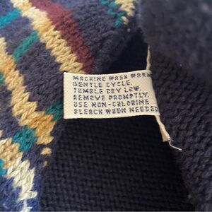 Vintage 80s 417 Authentic Sportswear by Van Heusen Sweater Vest. Cotton sweater vest featuring an Aztec inspired print on the front, 4 button front closure, & blue stitched trim detailing. Solid blue backing. In good preloved condition consistent with vintage age including minimal normal wear. Men’s medium but could easily be unisex. Approximate measurements lying flat: PTP 20” L 26” Please message me prior to purchasing a bundle. #vintage #unisex #sweatervest #aztec #southwestern