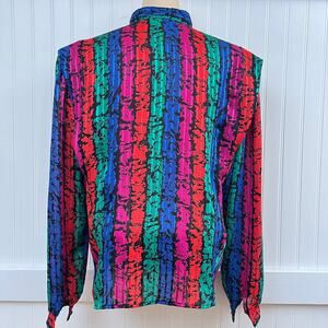 Vintage 80s 90s AJ & Friends Neon Bright Abstract Print Mock Neck Blouse Top 10