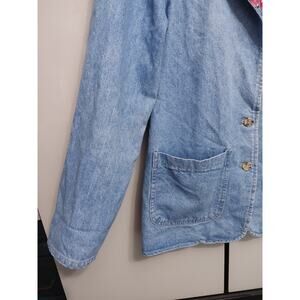 Vintage 80s 90s American Dungaree chambray denim jacket floral tapestry womens L