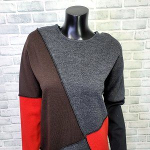 Vintage 80s 90s Andrea Jovine Size S Colorblock Wool Sweater Mini Bodycon Dress
