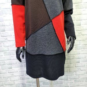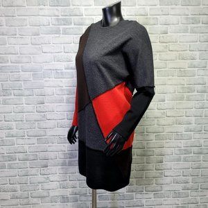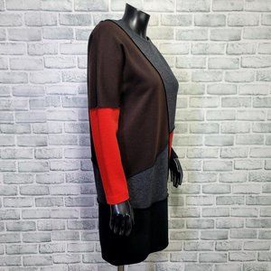 Vintage 80s 90s Andrea Jovine Womens S Colorblock Wool Sweater Mini Bodycon Dress. Long sleeve, 1/4 Zip back closure, Shoulder pads