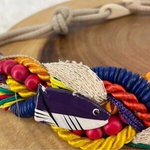 Vintage 80s 90s Beach Coral Fish Wooden Rope Woven Waist Belt with Hook Loop M