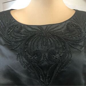 Vintage 80s 90s Black Beaded Embroidered Cocktail Dress Medium