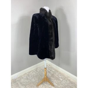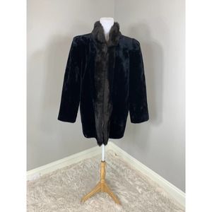 Faux Black & Brown Mink from Banded Collar to down front to bottom hem