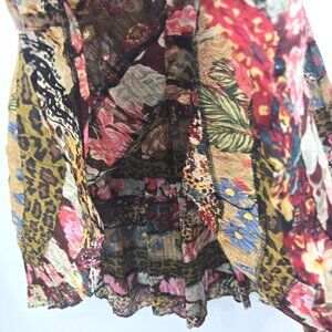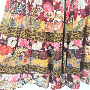 Vintage 80s 90s Brown Animal Floral Patchwork Boho Gypsy Maxi Broom Skirt