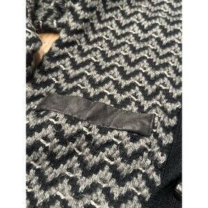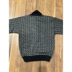 Vintage 80’s 90’s Cardigan Men’s M Black White Geometric Pattern Acrylic Knit