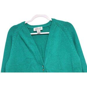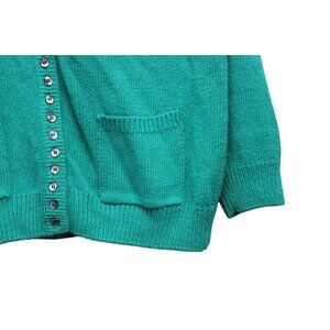 Vintage 80s 90s Cardigan Sweater Size Large Ramie Cotton Knit Teal Grandpa Retro