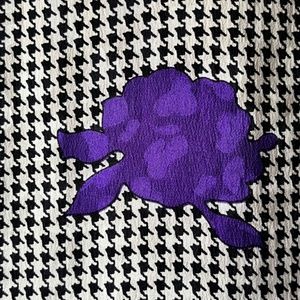 Cute new wave, working girl, mod or indie sleaze fit! 100% silk, super soft, light material. Houndstooth and vibrant flower design is beautiful. Good buttoned up or tied up for a cropped look. Some fraying on the inside where tag is, not noticeable when worn.