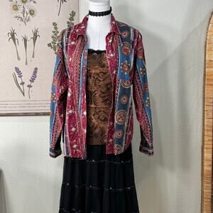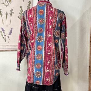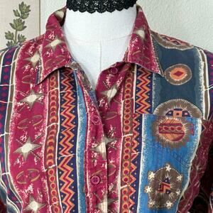 Vintage 80s 90s Celestial Aztec Button Up Shirt Southwestern Western Cowgirl M