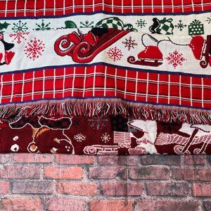Vintage 80s 90s Christmas Blanket Fringe Edges Bears Penguins Holiday 56x44