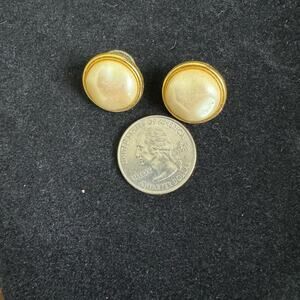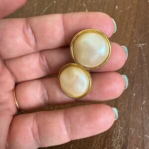 Vintage 80s 90s Classic Timeless Gold Tone Faux Pearl Statement Stud Earrings