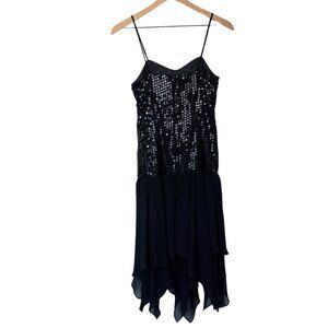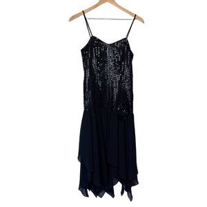 Vintage 80s 90s Cocktail Party Prom Dress Black Sequined Drop Waist Size Small