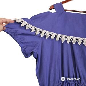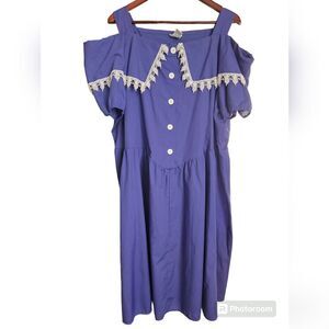 Vintage 80s 90s Cottagecore Purple White Decorative Collar Cold Shoulder Dress