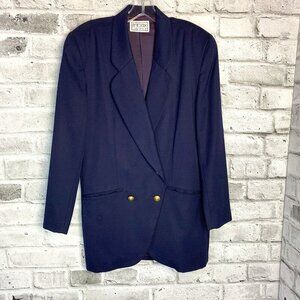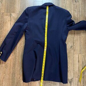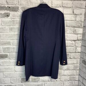 Vintage 80s 90s Double Breasted Navy Blue Wool Structured Long Blazer