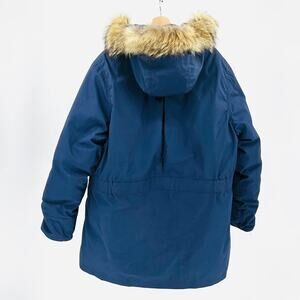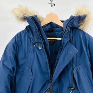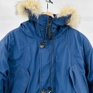 Vintage 80s 90s Eddie Bauer Blue Goose Down Real Fur Trim Hood Parka Coat