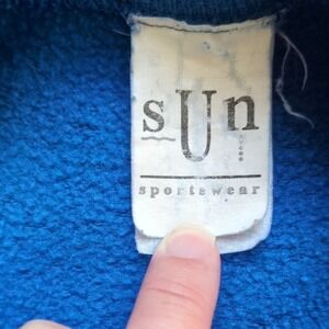 Vintage 80s 90s wild flower floral & butterflies design on a royal blue background sweatshirt. Cotton or cotton blend sweatshirt by Sun Sportwear.