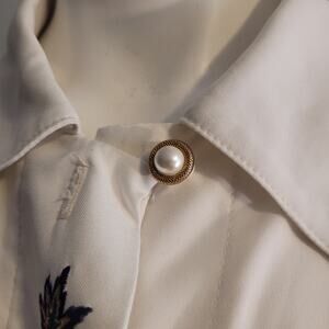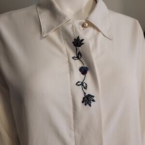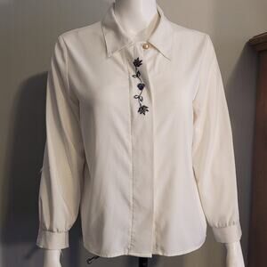 Vintage 80s 90s G.W. Petite Embroidered White Button Blouse Sz 6 Made in USA
