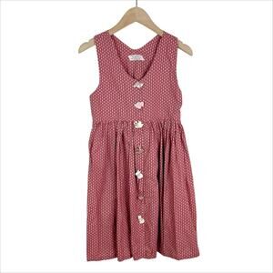 Vintage 80s 90s Girls Sleeveless Dress Pink with Unique Country Buttons