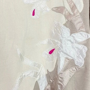 Tags not description: eco friendly sustainable on sale cheap discounted grandma unique rare one of a kind womens dorky nerdy S retro shirt top fashion clothes clothing grannycore grandmacore Tunic made in Hong Kong beige ivory turtleneck drippy soft sweats white flower 90s