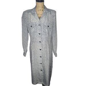 Vintage 80s 90s Gray Black Abstract Dot Long Sleeve Dress
