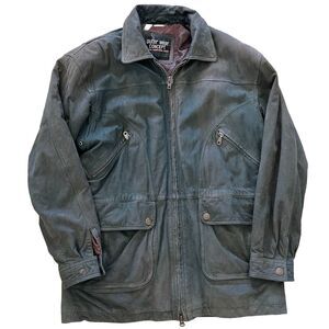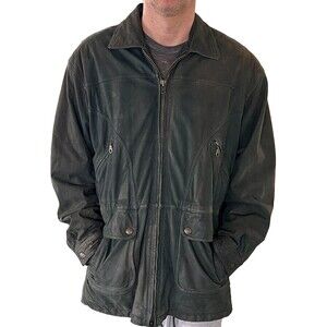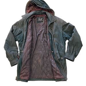 Vintage 80s 90s Grunge 100% Leather Worn Forest Green Heavy Coat Jacket Men's M