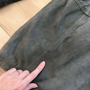 Stunning HEAVY leather coat. Very soft matte green leather, perfectly broken in.