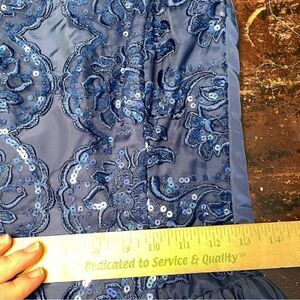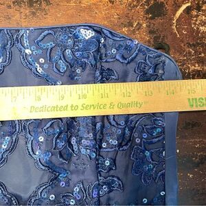 Vintage 80s 90s Prom Gunne Sax Blue Satin Formal Dress Bubble Bow Strapless 9/10