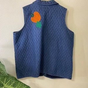 Vintage 80s 90s Haiks Quilted Denim Button Up Vest plus size 2X Autumn AJMC pin