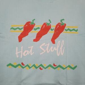 Vintage 80s 90s Hot Stuff Chili Pepper T-Shirt Mens Large Retro Graphic 50/50 Blue Soft Thin Southwestern Foodie Humor Tee Fruit of the Loom Tag Made In the USA