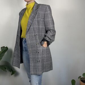 Vintage 80s 90s Houndstooth Plaid Double Breasted Blazer, Black Check Jacket