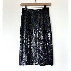 Vintage 80's 90's Iridescent Sequin Skirt | 100% Silk Lined Made in India
