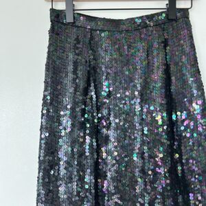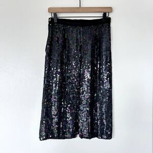 Rare vintage find; fully sequined black silk skirt with oil-slick iridescent shimmer - sequins shift from green to violet to bronze