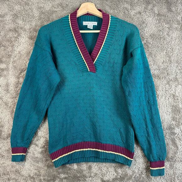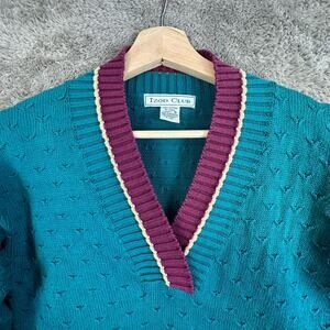 Vintage 90s 80s Izod Club V Neck Sweater Women's S Small Cricket Tennis Preppy Golf Teal Maroon