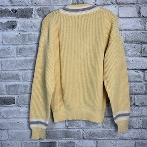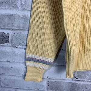 Crafted for the stylish and versatile wardrobe, this Vintage 80s 90s Izod Sweater is an excellent addition for those who appreciate a mix of retro charm and timeless fashion. The classic V-neck design, complemented by a chunky rib knit texture, offers both warmth and a touch of preppy old money sophistication. Its versatile yellow hue makes it an easy match for a range of outfits, whether you're aiming for a casual look or dressing up for a business event. The sweater is made from breathable cotton and boasts a heavyweight feel that's ideal for various activities, from golf to hiking. The tight-knit fabric provides durability and a comfortable fit in all seasons, making it a practical choice for both travel and everyday wear. The garment's care is straightforward with machine washability, ensuring it remains a low-maintenance staple in your collection.