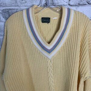 Vintage 80s 90s Izod V-Neck Chunky Rib Knit Preppy Golf Sweater