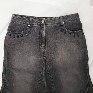Vintage 80s 90s Jeanology Women's Denim Skirt Black Wash Gems Mermaid 10
