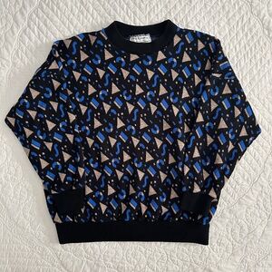 Vintage 80s 90s Jeric Knitwear Sweater Geometric Graphic Print Shimmer