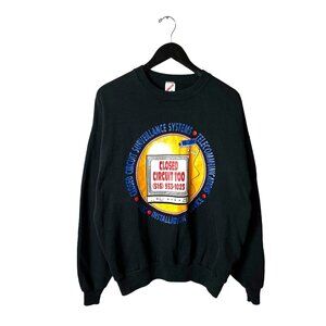 Vintage 80s 90s Jerzees Closed Circuit Surveillance Systems Graphic Crewneck Sweatshirt Black XL USA Unisex Fit