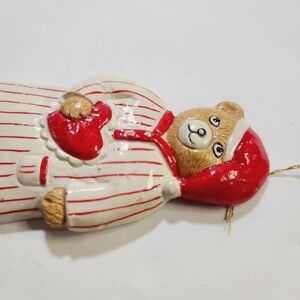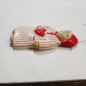 Vintage 80s 90s Kawaii Cute Teddy Bear Heart Ceramic Christmas Ornament