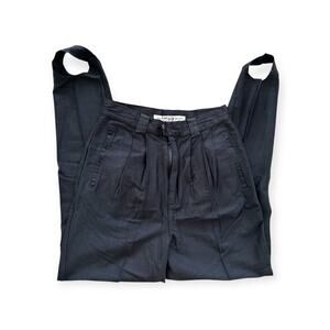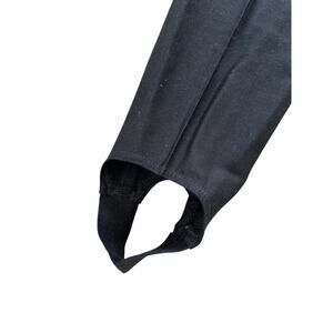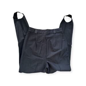 Kikomo twill black pleated zip up stirrup pants. These have a zipper, button closure and pockets. Pleated front, average length. These don't have any stretch width wise but do stretch length wise. These amazing vintage pants are in excellent preowned condition with no signs of wear.